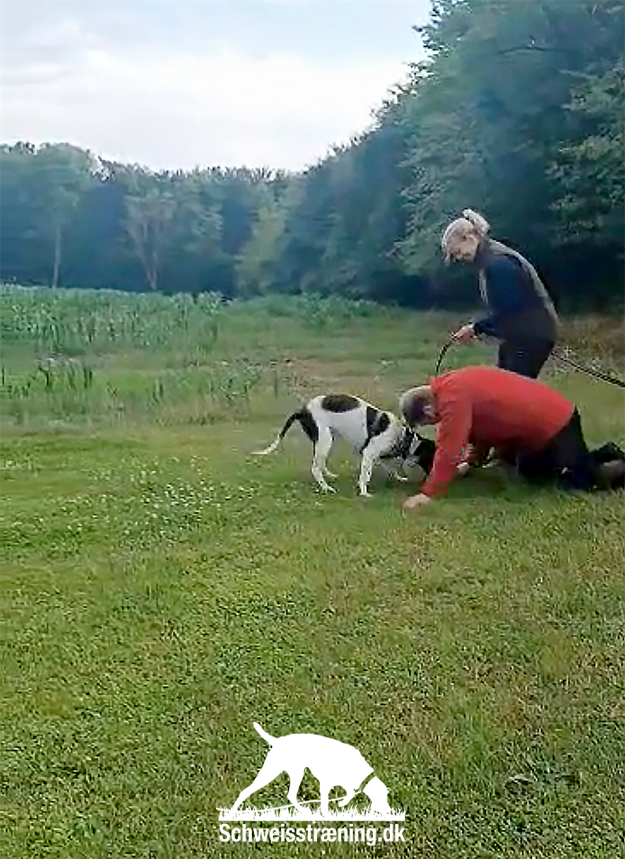 Det er tydeligt at se på videoen, at hunden pludselig forståe hvad det er vi vil have den til at gøre - nemlig at gå spor.