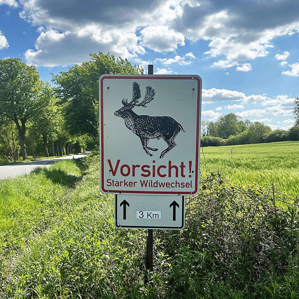 På vej ned gennem Tyskland så jeg et vejskilt som jeg aldrig har set før og som i den grad indikerede, at vi skulle passe på krydsende hjortevildt.