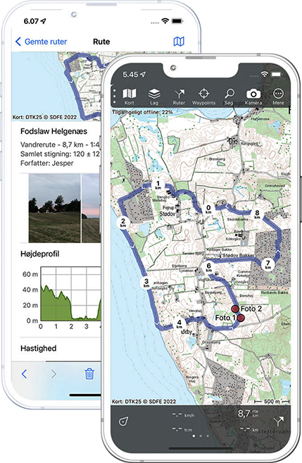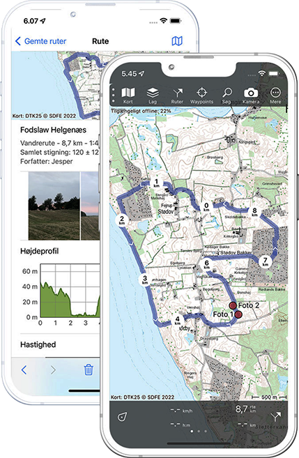 Personligt har jeg gode erfaringer med Topo-GPS som kan downloades til under kr. 50,-, og Topo-GPS kan bruges både på en Iphone og Androide mobiltelefon.