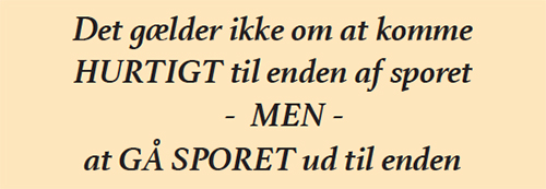 Når hvalpen har forstået øvelsen, og kan udrede et 100-200 meter langt spor, sker der ofte det, at hvalpen i takt med alderen og forståelsen for øvelsen begynder at sætte tempoet op og gå hurtigere.