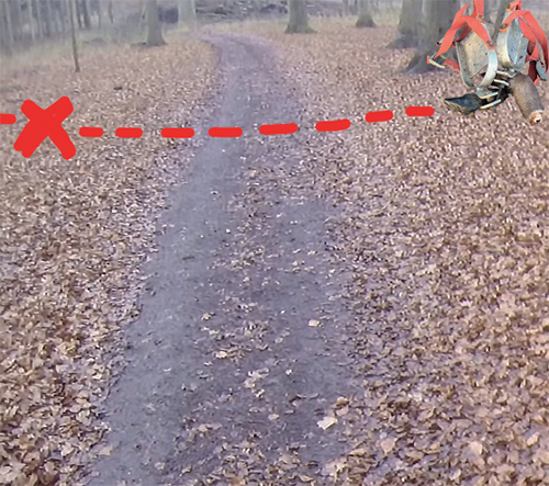 Man prøver ved denne form for sporstart at efterligne en rigtig jagtsituation, altså en hændelse hvor jægeren står på en grusvej, og foran ham springer et stykke hjortevildt over vejen, som der afgives skud til.