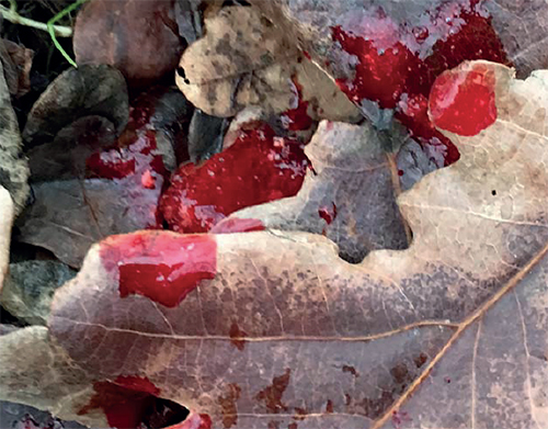 Jeg er ikke tilhænger af at bruge schweiss på klove eller på selve sporet, og bruger derfor kun nogle få schweissdråber til at lave anskudssteder og markeringer på sporet.