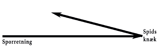 Når hunden kommer ud i spidsen af knækket (se illustrationen nedenfor), fortsætter hunden selvfølgelig ud i spidsen af knækket, hvorefter den vil søge fremad (som på det alm. spor).