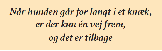 Hver gang hunden går ud over det spidse knæk, er du klar til at hjælpe den tilbage, ved selv at gå tilbage. Ligesom indenfor al hundetræning, gælder det om at gentage og gentage, indtil hunden har knækket koden.